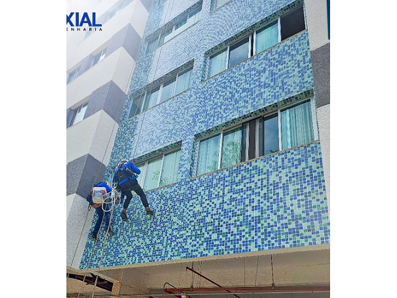 Somos especializados em fornecer soluções integrais para fachadas, que vão desde a manutenção preventiva e corretiva até à reabilitação e design de fachadas. Contamos com uma equipe de profissionais altamente capacitados e com ampla experiência em trabalhos em altura, como pode ser visto na imagem, garantindo segurança e qualidade em cada projeto.