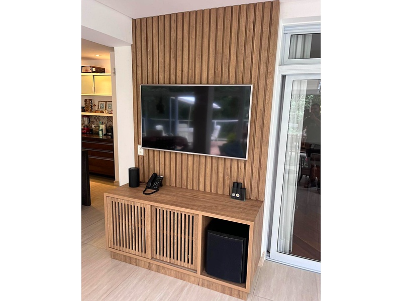 O painel de madeira para TV é uma peça de mobília projetada para abrigar e proteger sua TV, além de acrescentar um toque de aconchego e elegância a qualquer cômodo. Ele é construído com madeira de alta qualidade, garantindo durabilidade e resistência.