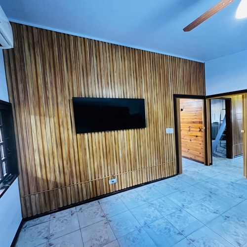 Paredes de madeira elegantes e acolhedoras, ideais para criar ambientes sofisticados e com toque natural. Com excelente isolamento térmico e acústico, oferecem beleza, durabilidade e um acabamento diferenciado em projetos residenciais e comerciais.