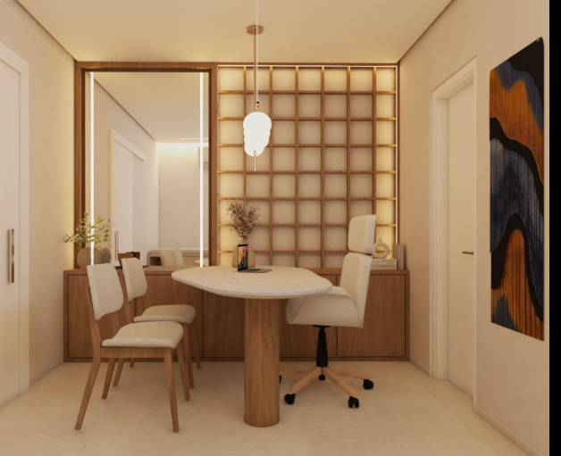 Crie um ambiente sofisticado e acolhedor com o design moderno de uma sala de restaurante. Com mobiliário contemporâneo e detalhes minimalistas, ela oferece um espaço perfeito para momentos gastronômicos excepcionais. Ideal para restaurantes que buscam combinar estilo e conforto, criando uma experiência única para os clientes.