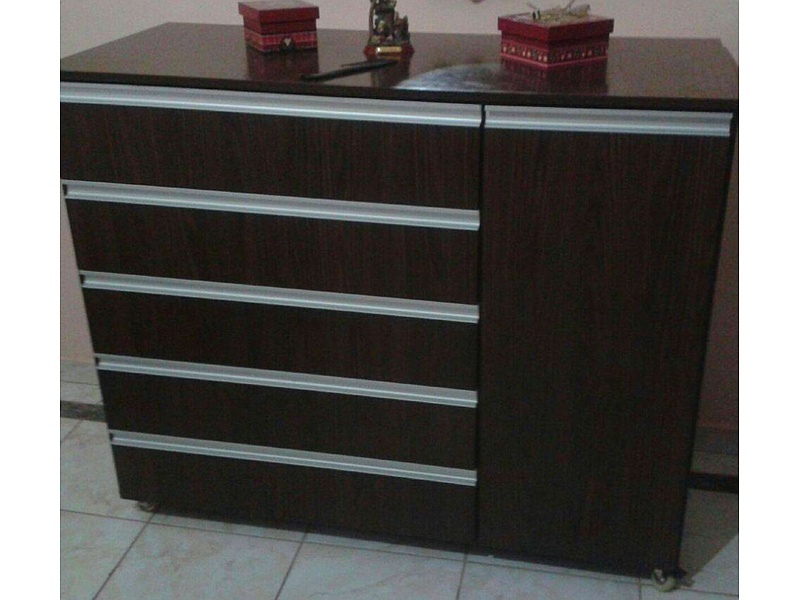 Cômoda em MDF com design moderno e funcional, oferecendo amplo espaço de armazenamento e acabamento sofisticado para qualquer ambiente.