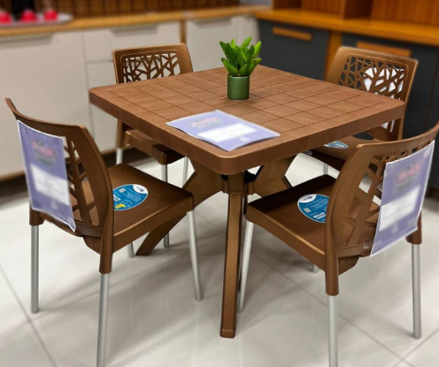 Mesa: Proteção contra raios solares e peças com encaixe, podendo montar e desmontar ; feita em polipropileno, que traz robustez e durabilidade ao equipamento.